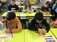 Gero, Erizek osasunari buruz bukatu duenean azaltzen, Rosak, ikastolako erizainak, laranja bat nola zuritzen den azaldu digu eta gainera guk lanranja zuritu eta jan dugu.
